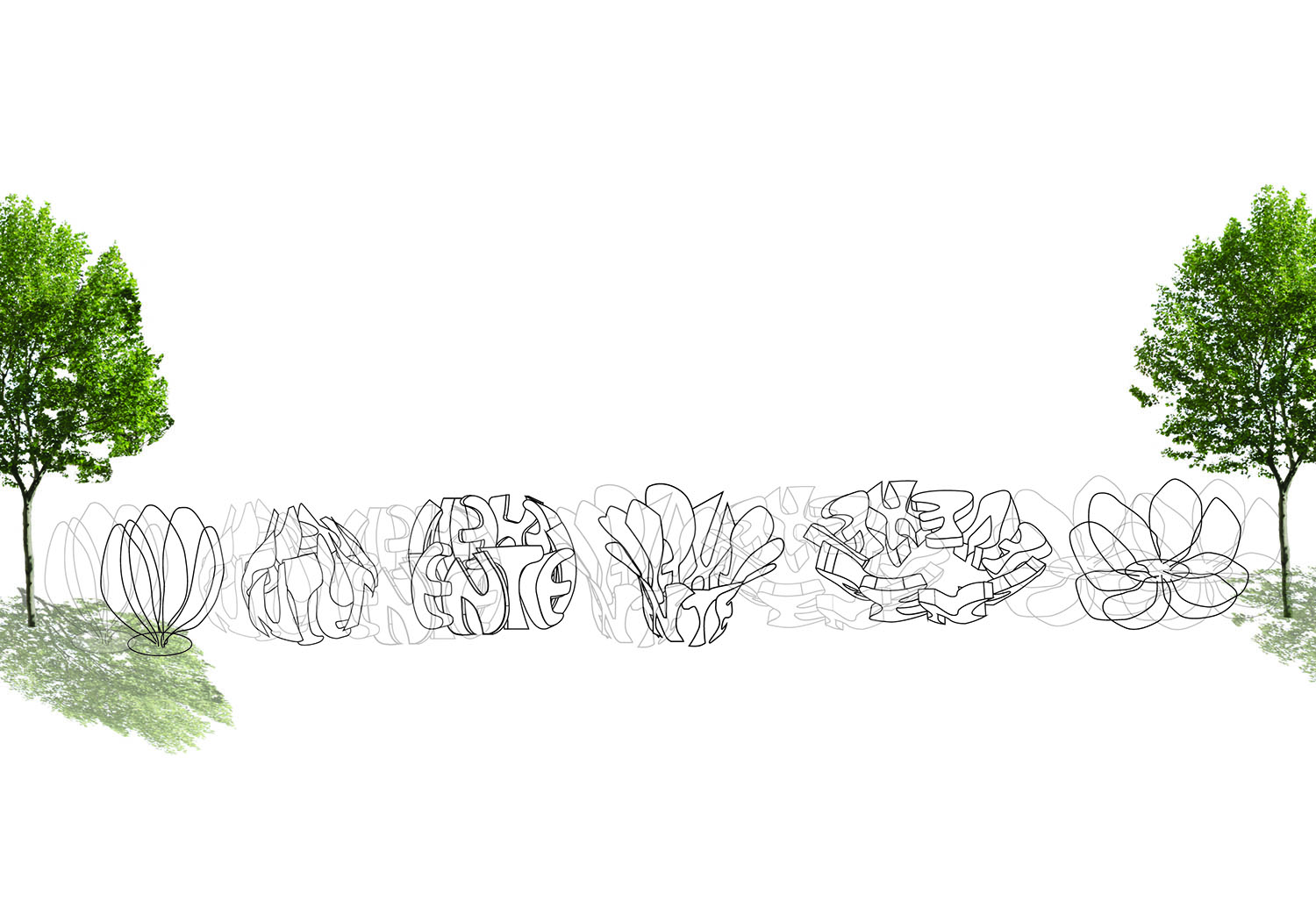 Freehand writing, one-piece typography, metal construction, laser cut, self-supporting, no base.