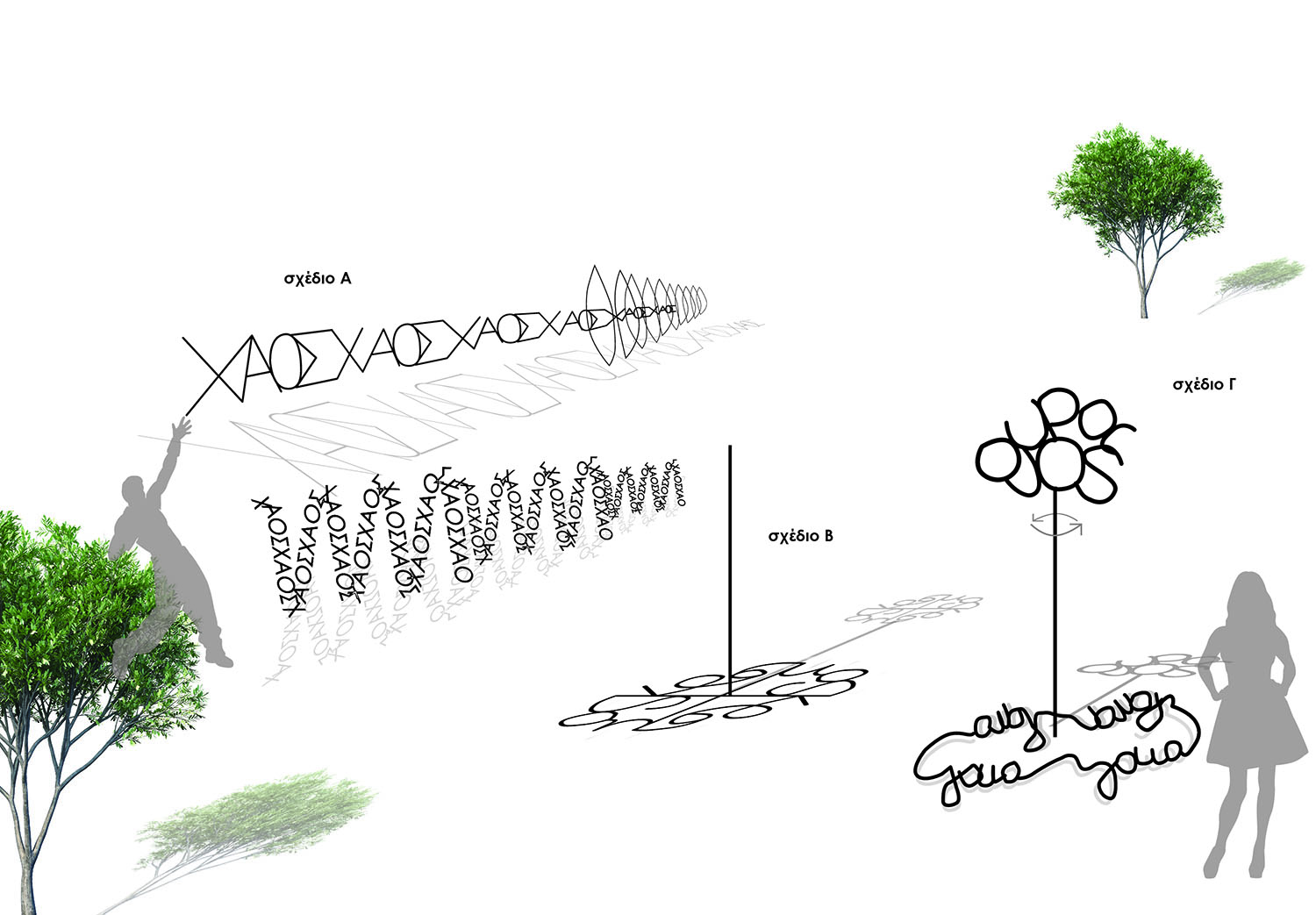 The letters of the word “Εντελέχεια” in parametric transformations create images of potential evolution . . .