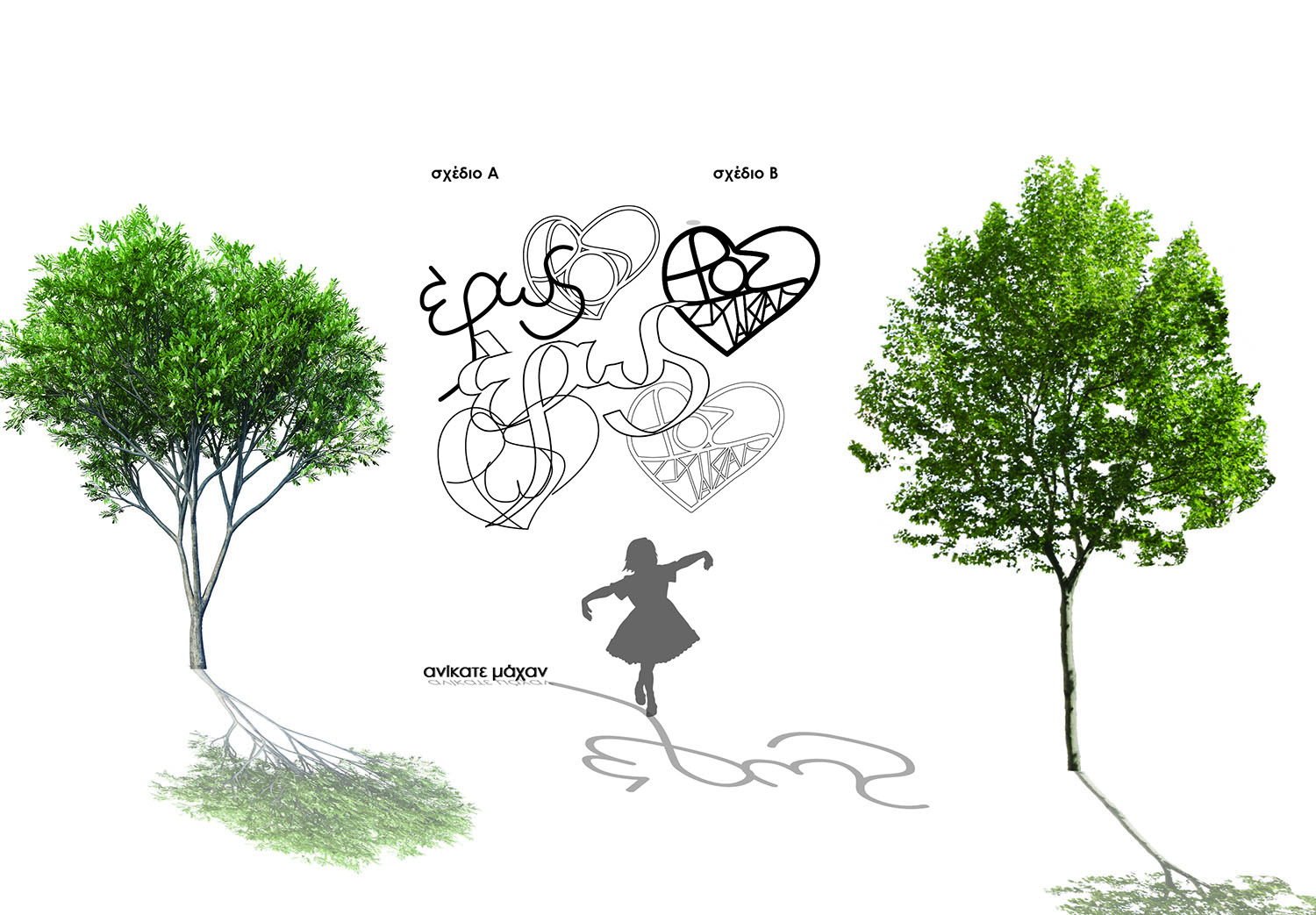 A heart . . . inside her . . . Eros (Έρως) . . the victory (η νίκη) . . . and the battle(η μάχη) . . . draw routes. . .